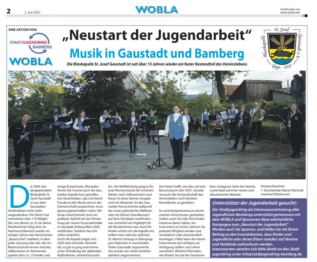 Ausgabe vom 02. Juni 2021 mit der Blaskapelle St. Josef Gaustadt e.V.